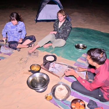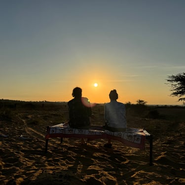Just outside Jodhpur in Rajasthan’s Thar Desert, this experience is designed for travelers seeking a raw, non-commercial desert stay - no tents, no huts, no lights or infrastructure. You sleep directly on the open desert under the stars. Your journey begins with a slow, traditional camel safari across sand dunes and quiet desert trails. Enjoy the vast landscapes, natural silence, and sparse vegetation at a relaxed pace. In the evening, reach a secluded spot far from villages and camps. Watch a natural desert sunset, then enjoy a simple home-cooked Rajasthani vegetarian dinner made with local ingredients. The night is spent on traditional bedding placed right on the dunes, surrounded by cool breezes and complete silence under a brilliant starry sky.