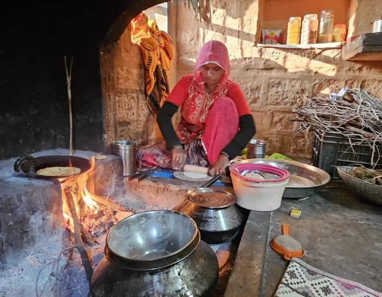 Visit a nearby rural village for an authentic homemade Rajasthani vegetarian meal prepared by a local family. End with a cultural program at our homestay featuring traditional folk dance and local performances, offering a genuine taste of Rajasthan's heritage.