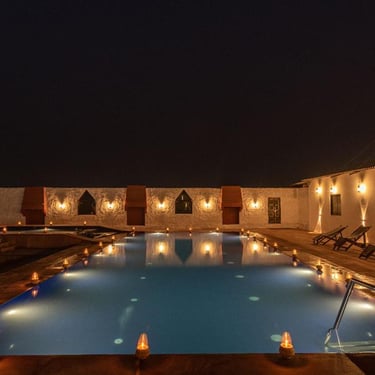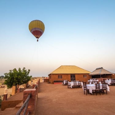 Indulge in an overnight stay in our spacious, well-appointed tents - offering premium comfort with modern amenities for a truly elevated desert experience. Every package here includes an enchanting cultural program featuring traditional Rajasthani folk music and dance, plus all meals (delicious home-style Rajasthani cuisine for dinner and breakfast).